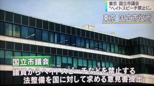 国立市議会の暴走。 9月22日のニュースですが...ヘイトスピーチ等を禁止する法整備を 国に対して求める意見書提出。だそうです。 って、...相手の国では国策として非難してるというのに、なにやってんの?国立市議会。 平和を愛する一般市民という立場からは…
