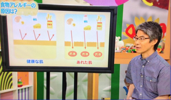 皮膚からアレルギーの原因物質が入ったときに、アレルギーになるんです。